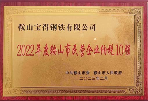 ●2022年度鞍山市納稅10強(qiáng)民營(yíng)企業(yè)