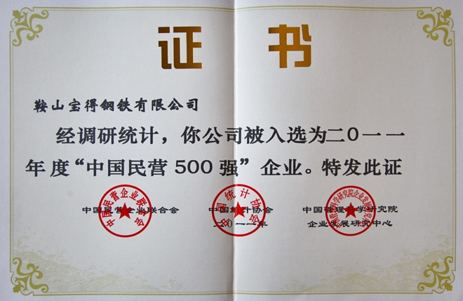 ●2011年中國(guó)民營(yíng)企業(yè)500強(qiáng)。