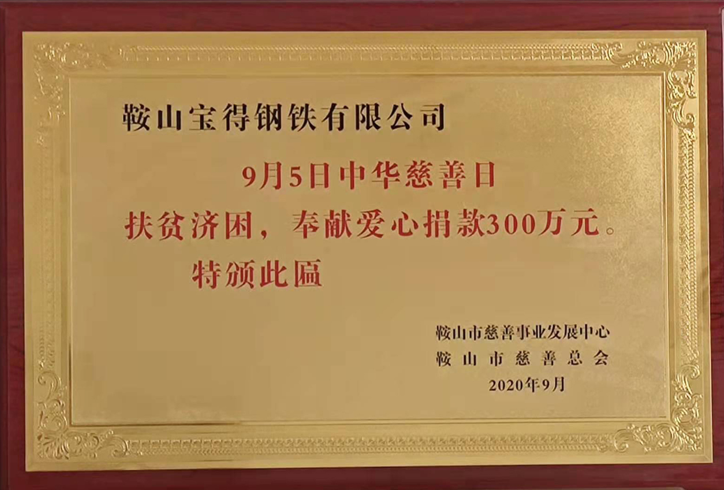 - 鞍山首個(gè)!寶得公司喜獲中國(guó)慈善最高獎(jiǎng)2020-09-15